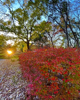 子供の国から、かえで池を抜けると、もみじ谷が、そして、あじさい園のモミジも素敵に色づいています。