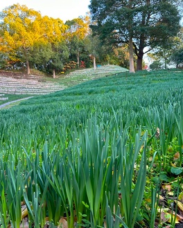 当園水仙郷では60,000株以上のスイセンが斜面一面に咲き、素敵な香りを漂わせます。水仙郷の現在の様子です。