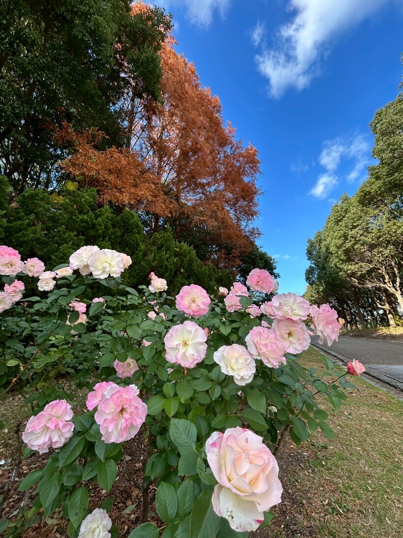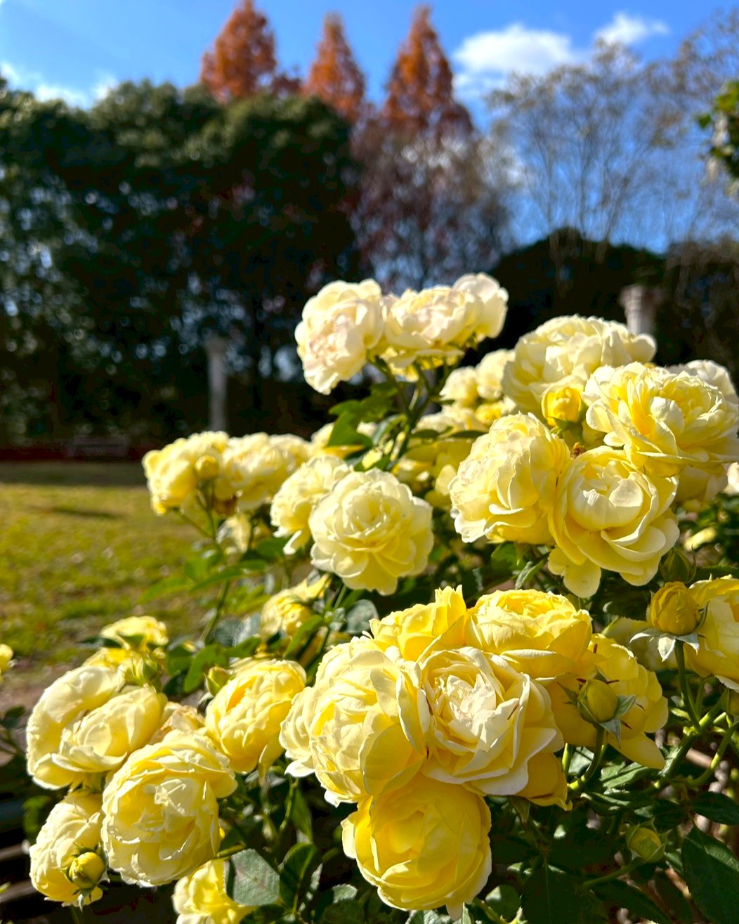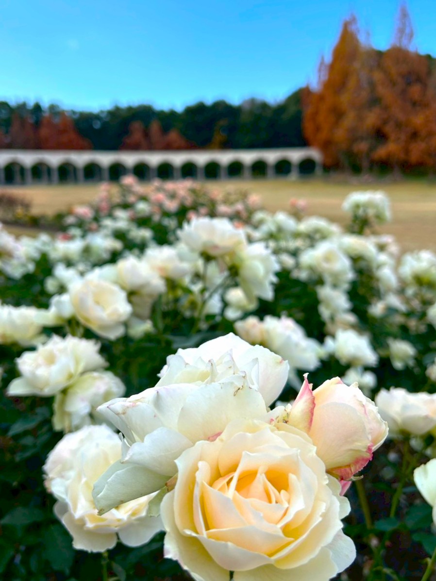 冬の始まりの中、澄んだ空気と素敵なバラ園をぜひお楽しみください。