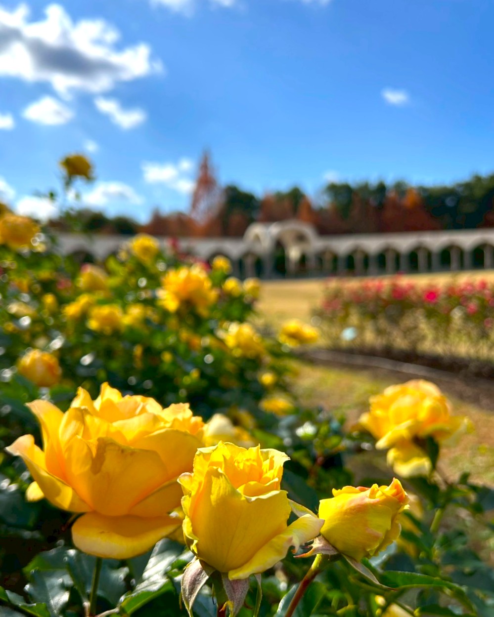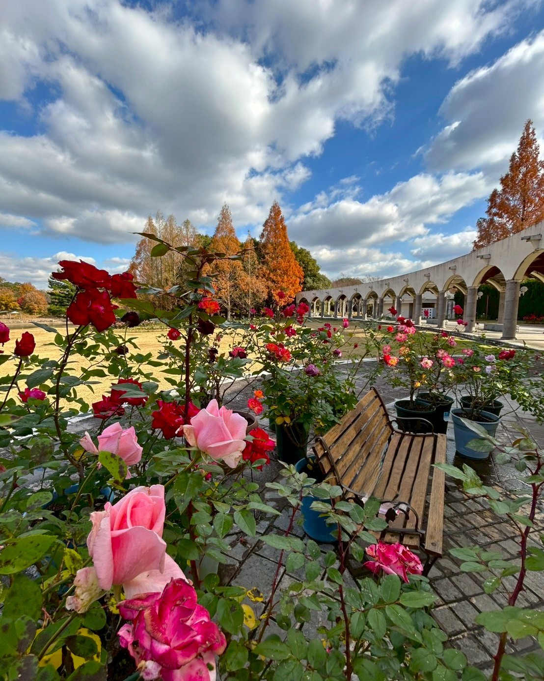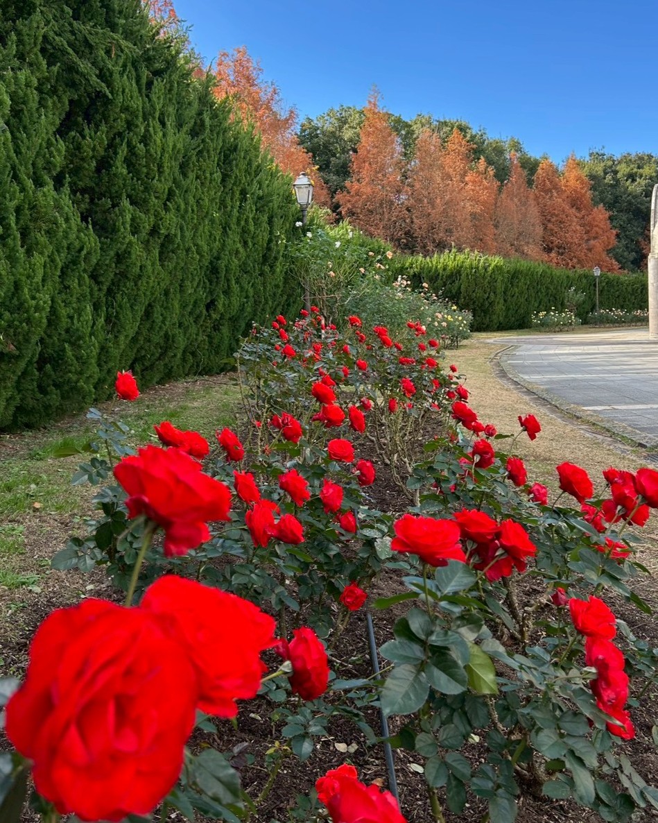 冬の始まりの中、澄んだ空気と素敵なバラ園をぜひお楽しみください。