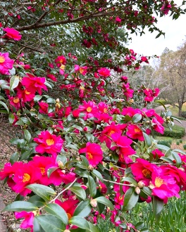 ツバキの花とよく似ていますが、花が終わる時にツバキは花の形を残してそのまま落ちるのに対して、サザンカは花の形を残さず、花びらがばらけて散っていきます。