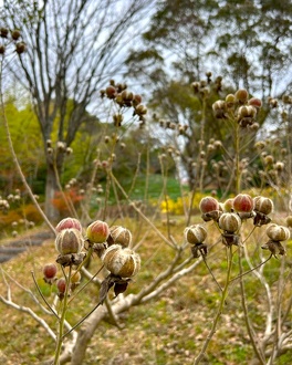 優雅な花の後に見られる姿は「枯芙蓉(かれふよう)」として冬の季語にもなっています。