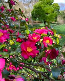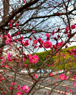 花木園のウメが咲き始め、第一駐車場入口のウメは綺麗に咲きそろっています。