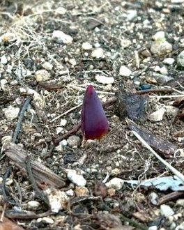 昨年12月に植え付けたチューリップが芽を出し始めました。開花の見込みは3月末頃です。